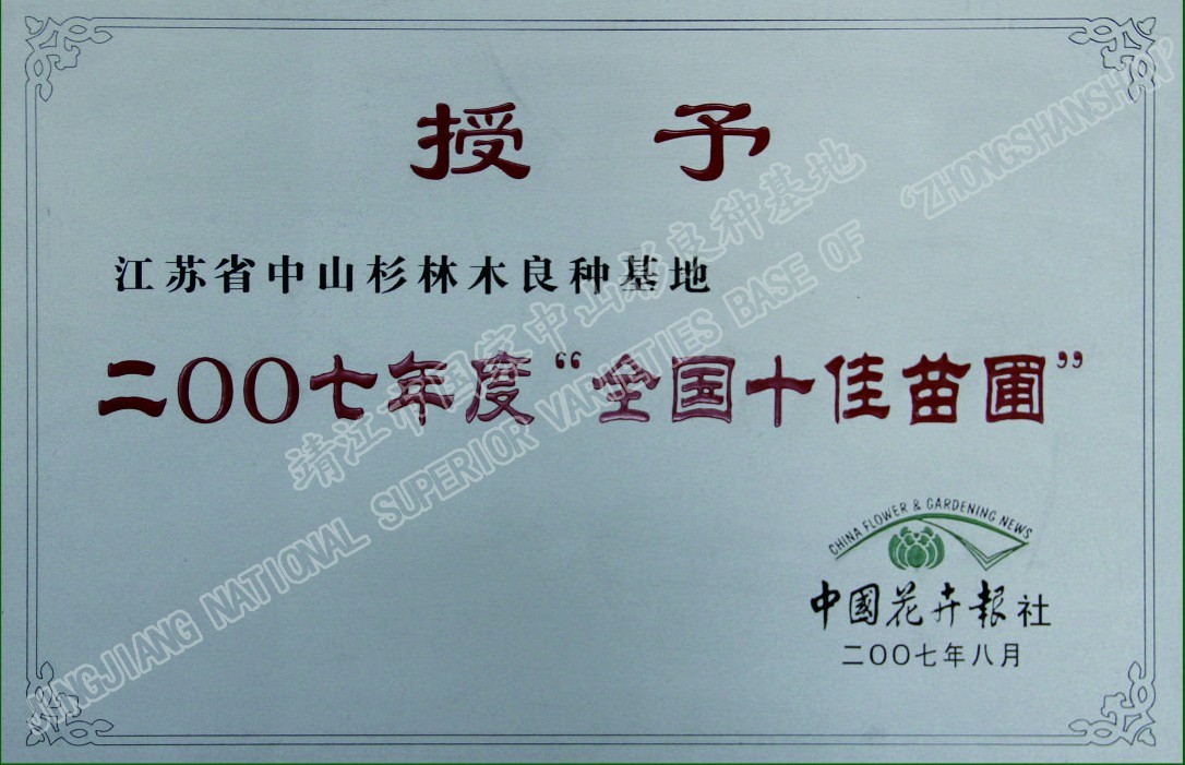 靖江市中山杉林木良種有限公司單位現(xiàn)有職工120人,其中中高級技術人員26人,初級技術人員45人,高級技工45多人,備有多功能灑水車、高空作業(yè)車、挖掘機、草坪噴播機等齊全的園林施工機械,年承接綠化工程100萬平方米以上。公司自成立以來,參與了眾多省內(nèi)外綠化重點工程的建設,先后完成江陰長江公路大橋、潤揚大橋、南京三橋、蘇州吳中大道、揚州西北線繞城、無錫沿江高速、無錫342省道、滬寧高速、泰高路、寧通高......